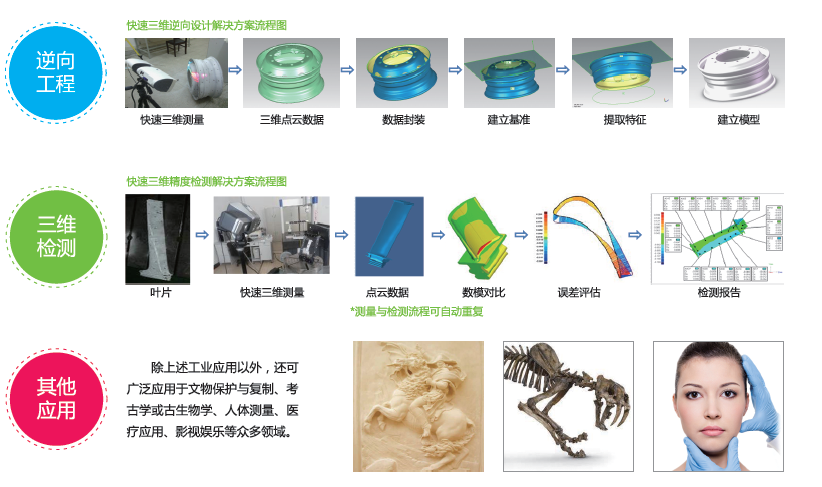 面掃描三維測量技術是一種集光學、機械、計算機視覺、攝影測量和軟件工程于一體的新型三維測量技術。面向高端制造業和傳統制造企業的需求,開展各類產品的設計、制造、檢測等技術支持。
