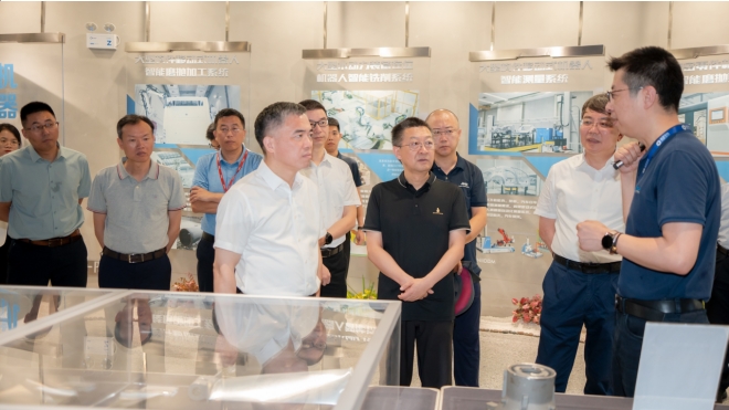 在國創(chuàng)中心數(shù)智空間,副院長浦棟麟具體匯報了國家數(shù)字化設(shè)計與制造創(chuàng)新中心江蘇中心、江蘇省數(shù)字化設(shè)計與制造創(chuàng)新中心的建設(shè)情況,重點對研究院和創(chuàng)新中心在智能制造單元組件和裝備、復(fù)雜曲面關(guān)鍵零件加工工藝和工業(yè)軟件、機(jī)器人化加工等方面的研究成果和產(chǎn)品進(jìn)行了詳細(xì)的介紹。